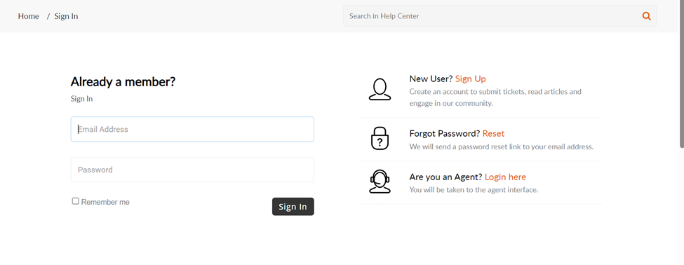 Paso 1: El usuario ahora puede registrar un ticket directamente desde el autoservicio. Para agregar entradas, debe desplazarse hacia abajo por la página de inicio y hacer clic en "Enviar entrada".