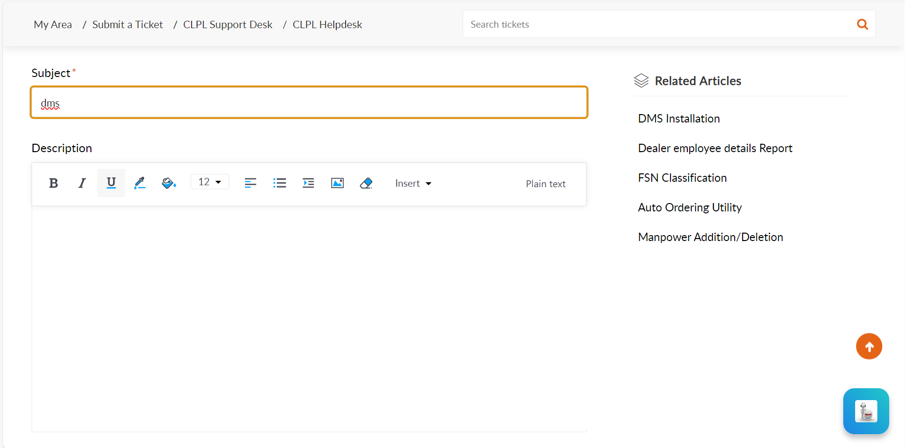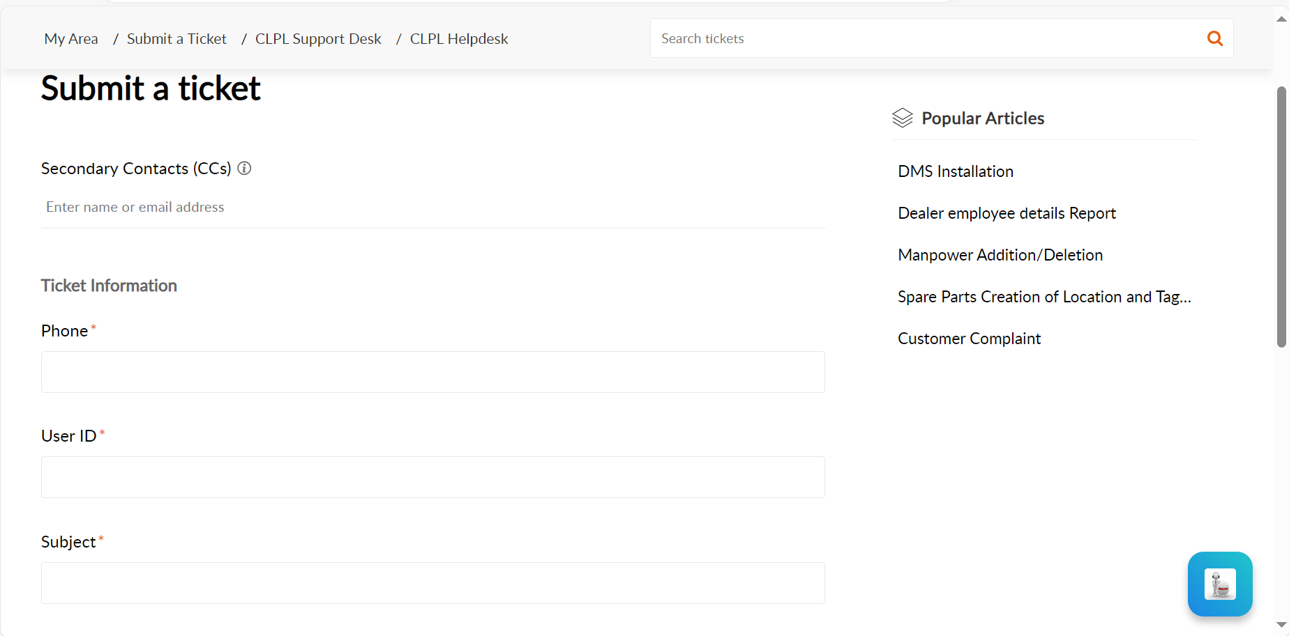 Paso 2: Se abrirá un formulario de ticket para enviar la solicitud. Se le pedirá que rellene los detalles.