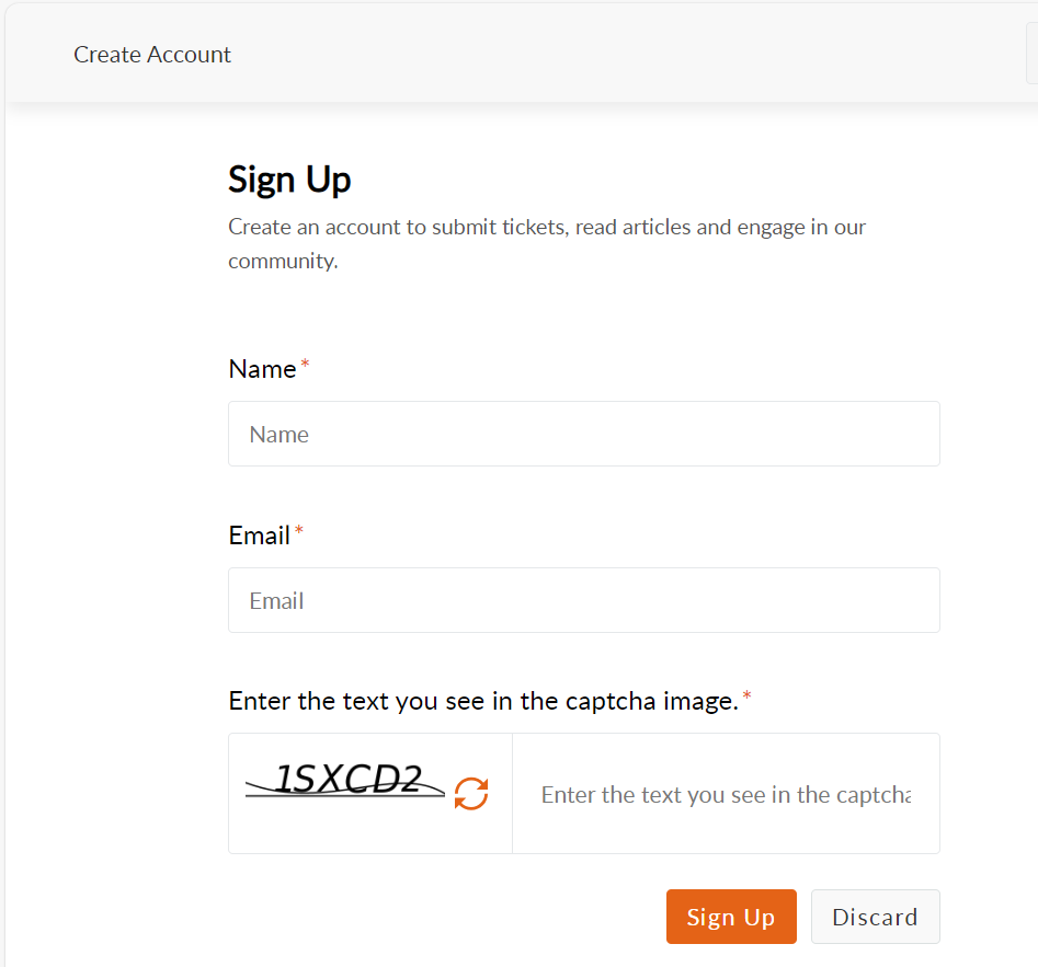 Si eres un usuario nuevo, necesitas crear una nueva cuenta haciendo clic en Regístrate. Introduzca su identificación de correo electrónico, elija una contraseña e introduzca la captcha.